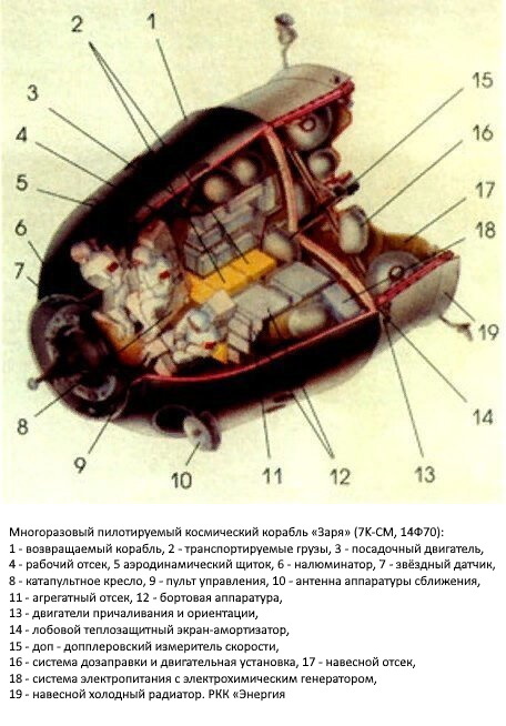 «Заря» — советский многоразовый транспортно-многоцелевой пилотируемый космический корабль. Предполагалось многоцелевое использование корабля «Заря», рассчитанного на совершение полётов как в пилотируемом, так и в автоматическом режимах: как основное универсальное средство для доставки экипажей и некрупногабаритных грузов на орбитальную станцию «Мир» и возвращения их на Землю вместо используемых пилотируемых кораблей «Союз» и автоматических грузовых кораблей «Прогресс», для ремонта и дозаправки спутников на орбитах вплоть до геостационарной и различных других специальных одиночных.